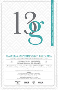 En este momento la convocatoria para acceder a la Maestría en Producción Editorial se encuentra abierta. Mantente al tanto en nuestras redes sociales para conocer cualquier novedad en la convocatoria.